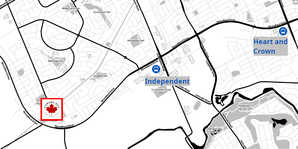 Due to limited parking at the event site and road closures in the area, we strongly urge you to avoid the traffic nightmares by taking our shuttle bus from Your Independent Grocer or Barrhaven Heart & Crown right to Mattamy Homes Canada Day in Barrhaven.